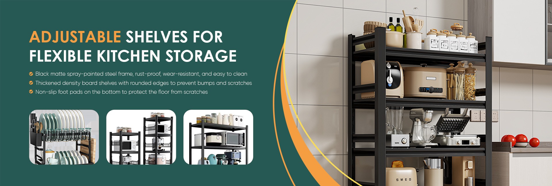 मुक्त स्थापना बड़े तह रसोई भंडारण रैक ओवन और माइक्रोवेव धातु सामग्री के लिए फर्श खड़ी बहु-परत रैक